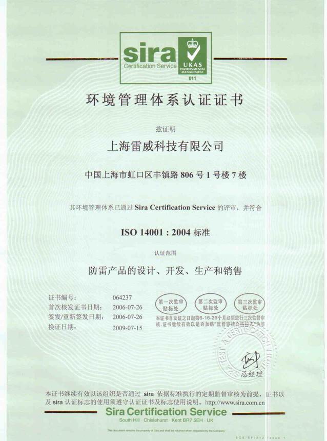 ISO14001認證證書