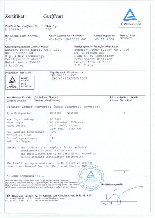 "小功率高性能正弦波逆變電源的研究與開發(fā)"項(xiàng)目資格證書