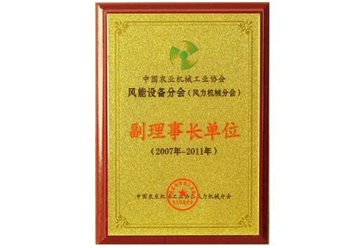 中國農(nóng)業(yè)機(jī)械工業(yè)協(xié)會風(fēng)能設(shè)備分會副理事長單位證書