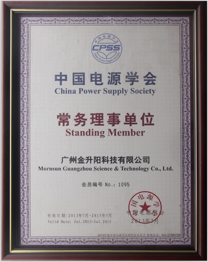 廣東省電源學會理事單位證書