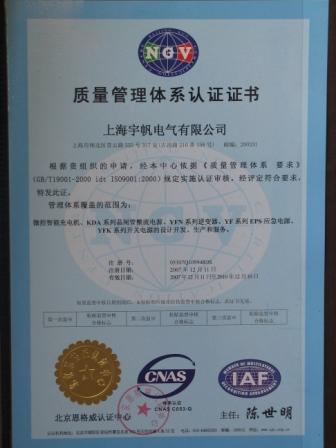 ISO9001質量體系認證證書