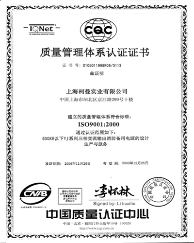 上海柯曼EPS電源高新技術(shù)證書