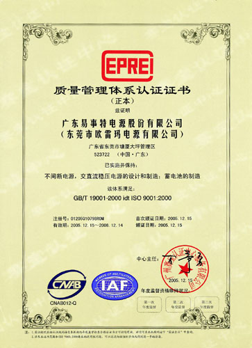 ISO9001:2000質量體系認證證書