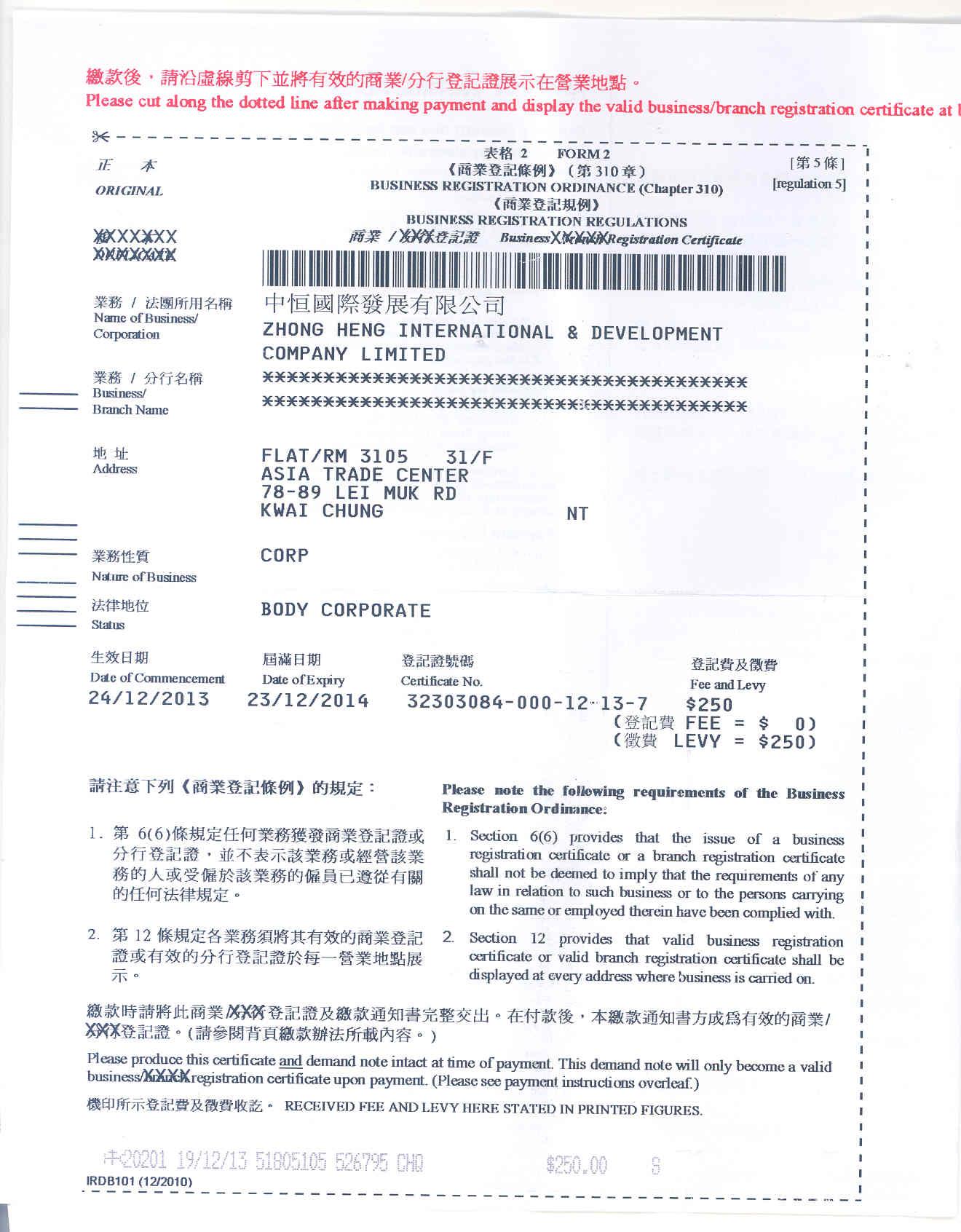 香港商業證書