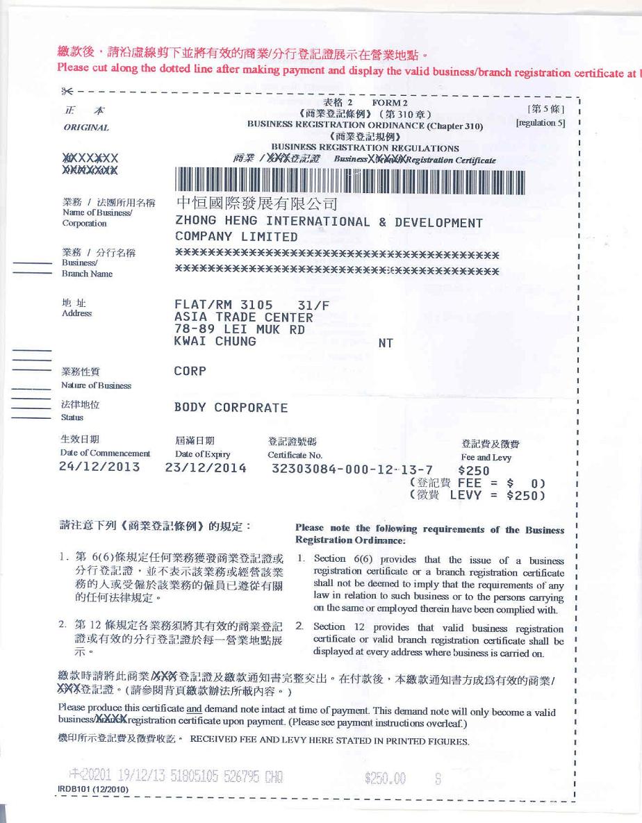 中恒國際發展有限公司深圳辦