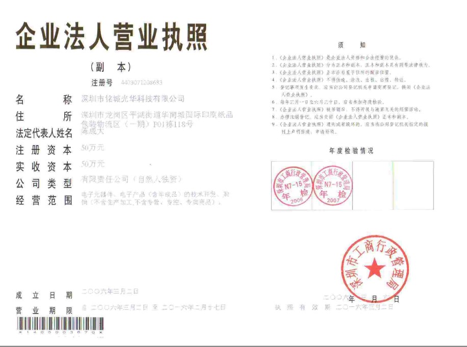 深圳市銘城光華科技有限公司