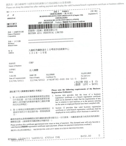 公司注冊登記證