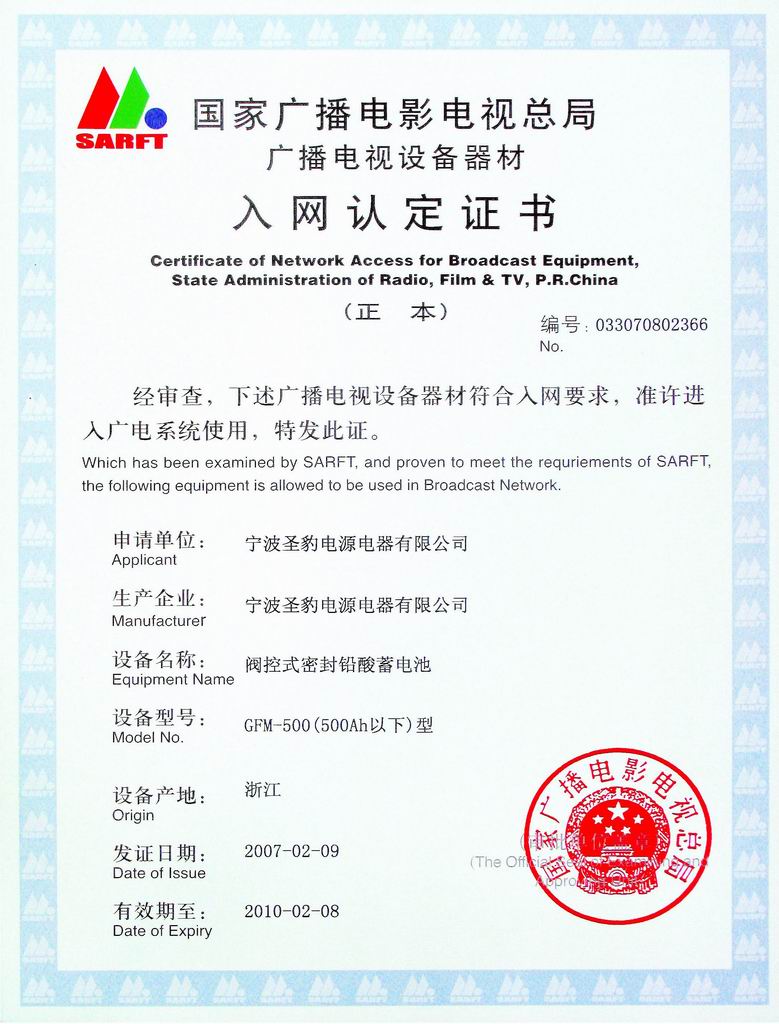 廣電總局入網證