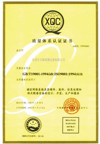 ISO9001質(zhì)量體系認(rèn)證證書